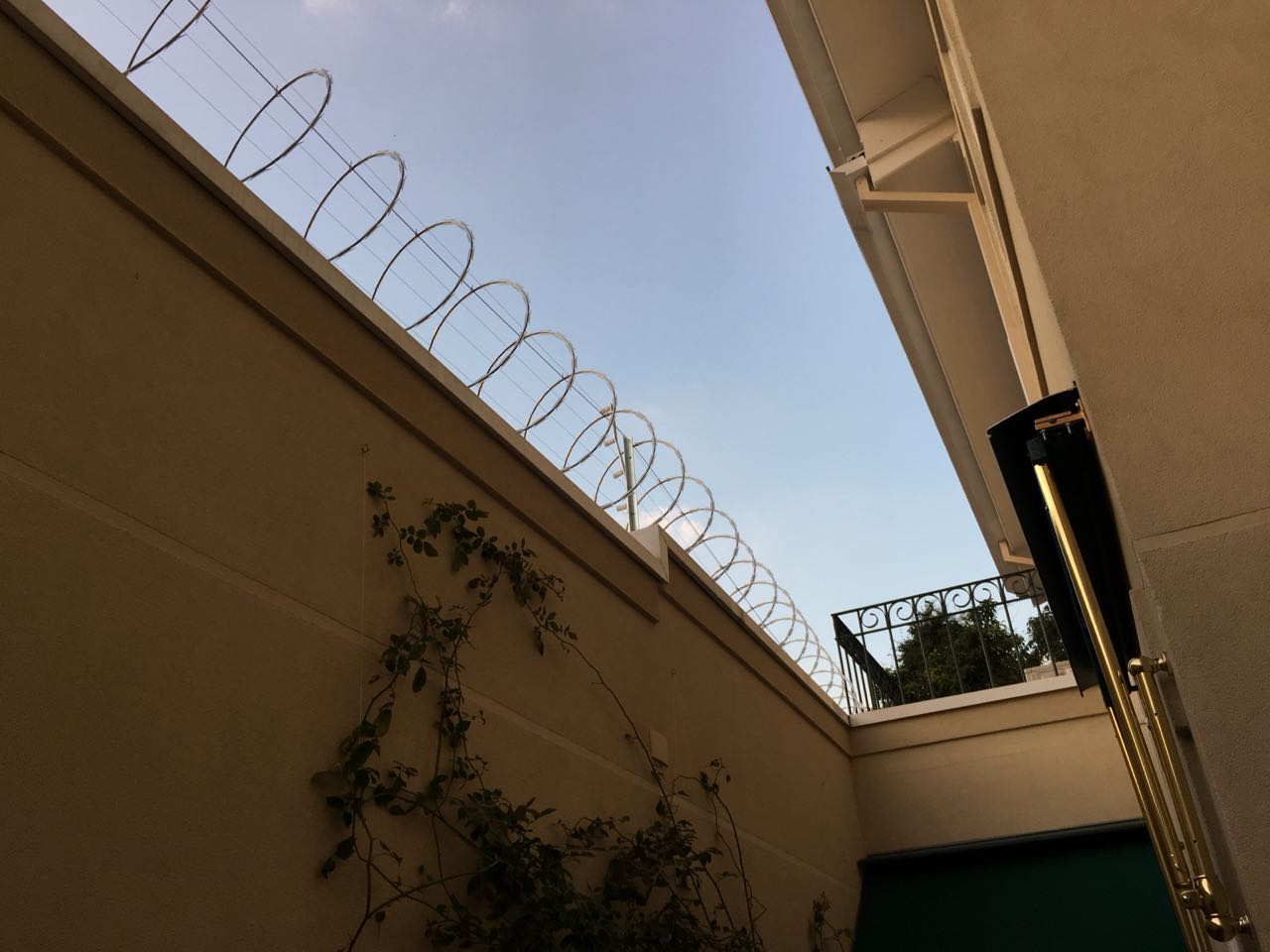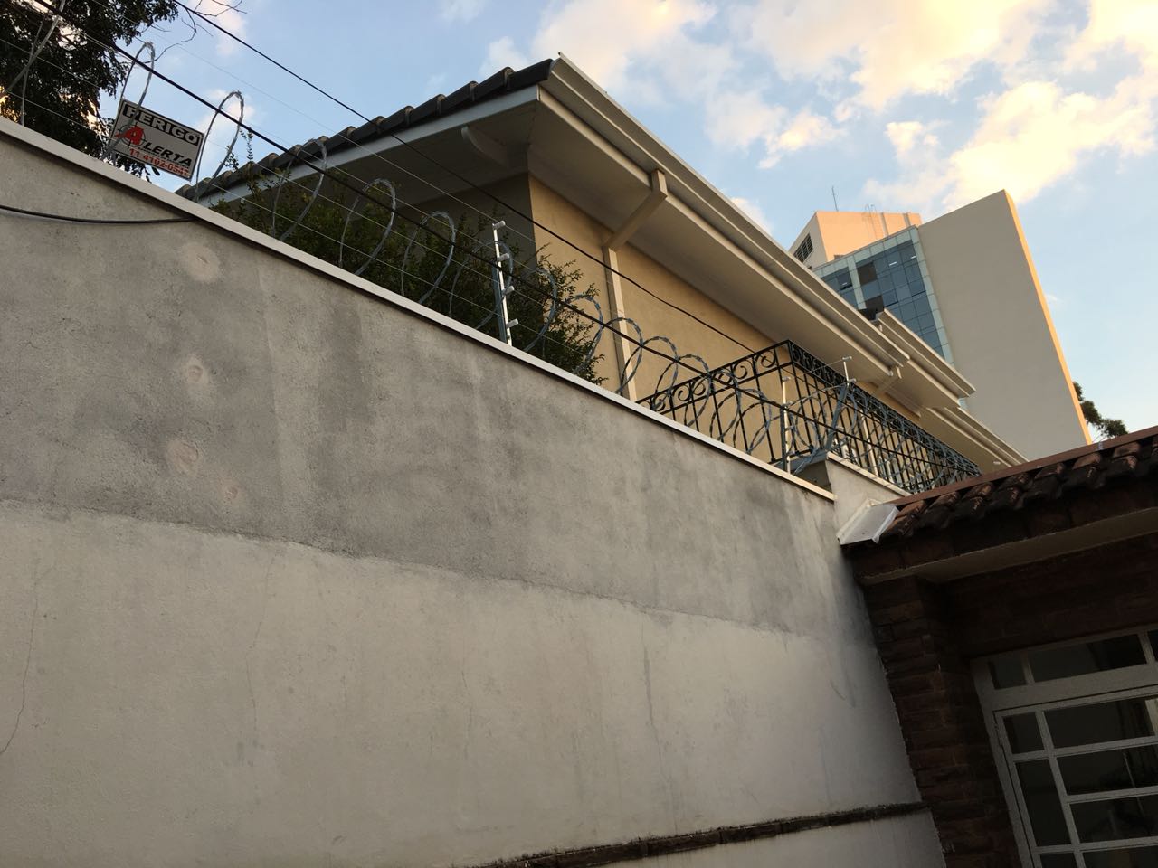 Instalação de concertina aspiral 45cm eletrificada com 18.000 volts em Residencia na Região central de São Paulo. Dois fios de energia correm dentro do aspiral da concertina e dois fios acima da concertina, liberendo uma energia de 18 mil volts, ao ser tocada, libera o choque eletrico e aciona uma sirene.